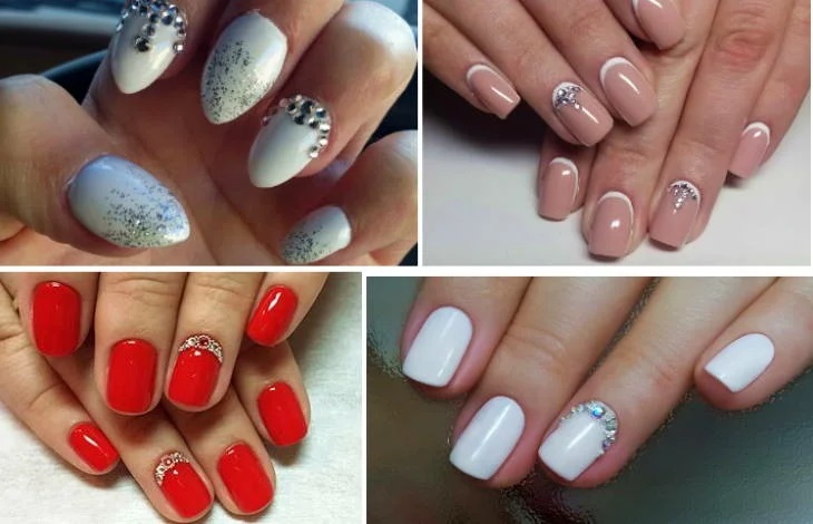 Застосування кристалів в нейларті – поле для фантазії. Найчастіше майстер володіє декількома варіантами, які він придумав сам і виконує на ура. При цьому манікюр можна урізноманітнити камінням по вже готовим схемам. Наприклад, зараз великим попитом користується бічне заповнення кристалами зворотного френча.