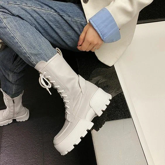 Громіздкі світлі черевики на шнурівці – це основний тренд зими, що минає, який прикрашав і продовжуватиме прикрашати собою різні стилістичні образи.