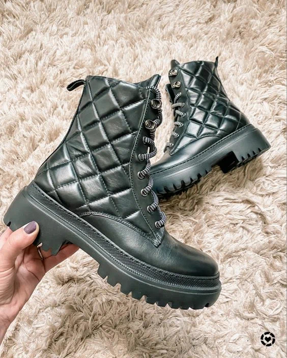 Практичні чорні черевики з натуральної стьобаної шкіри на шнурівці стануть найкращим придбанням цього сезону.