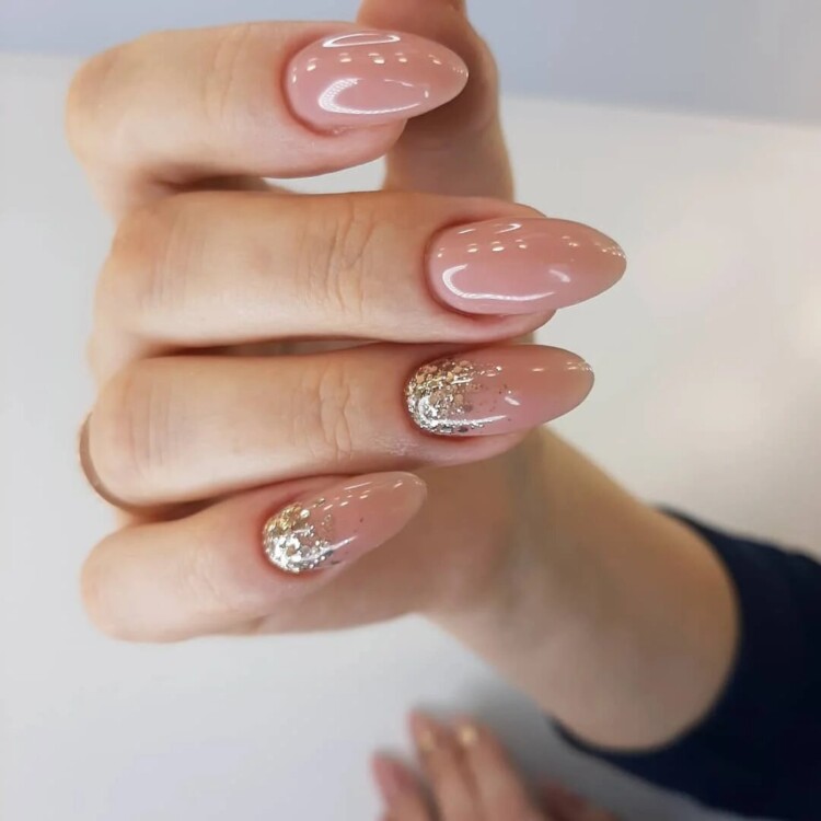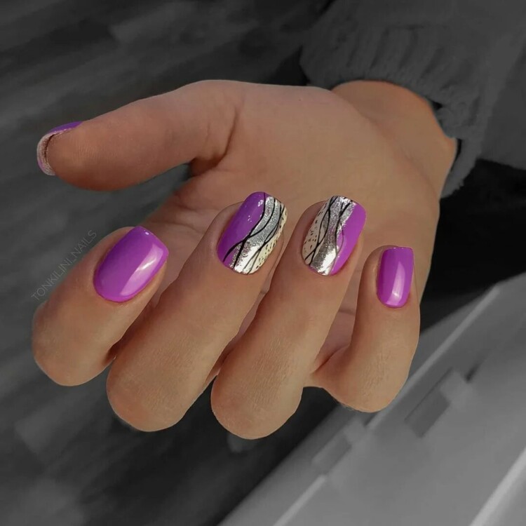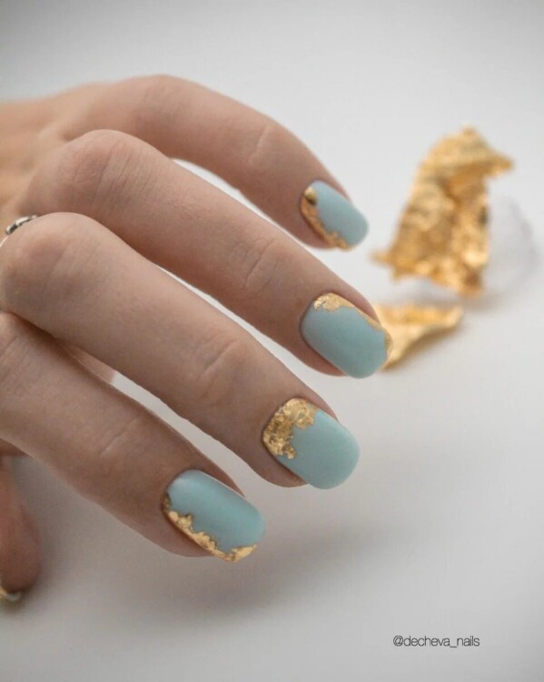 Ідеальним рішенням для блискучого манікюру вважається фольга, яка буває самих різних забарвлень. За допомогою цього декору можна зробити лаконічний, але при цьому все ще святковий дизайн.